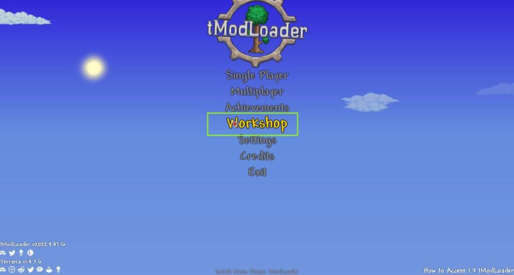 정상적으로 실행되는 것을 확인하셨다면, 로딩이 모두 끝난 뒤에 Workshop을 눌러주시면 됩니다. 모드 적용만 하면 끝이기 때문이죠. 이렇게 테라리아 칼라미티 모드 한발자국 가까이 다가갔네요.