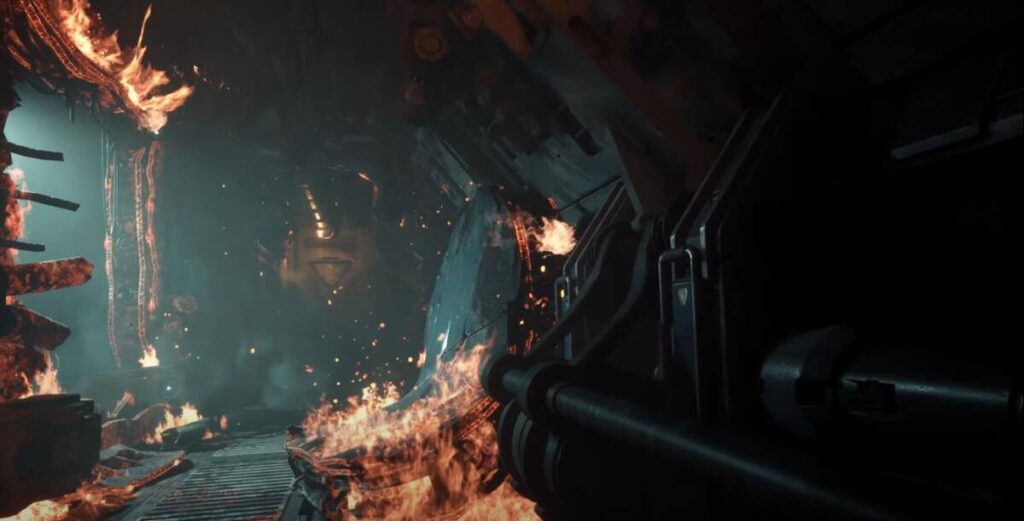 언뜻 보기에도 데드 스페이스의 분위기가 느껴지지 않나요? 사용된 에셋들의 컬러 그레이딩도 데드 스페이스의 느낌과 매우 흡사하다고 느껴졌는데요. 앞서 언급드린대로 배경적인 맥락과 함께 사진을 바라 보았을 때 그런 점이 더욱 더 와닿는 것 같습니다. 데드 스페이스도 우주선과 같은 곳에서 진행된다는 점 때문에 위 사진처럼 좁은 공간에서 이야기가 펼쳐지는데, 칼리스토 프로토콜 역시도 그러한 모습이 주를 이를 듯 하네요.