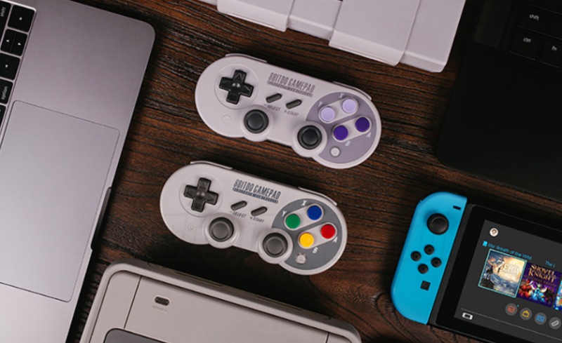 고전 게이밍 기어들로부터 영감을 받아 내놓는 아이템마다 히트시키는 8bitdo의 이 제품은 90년대초 출시된 닌텐도 슈퍼패미컴 스타일을 하고 있다. 빨/노/파/초의 ABXY키 컬러와 그레이 컬러까지 그대로. 6축 모션센서와 연사버튼 등의 편의기능을 탑재하고 있으며, 버튼 맵핑도 지원한다고.