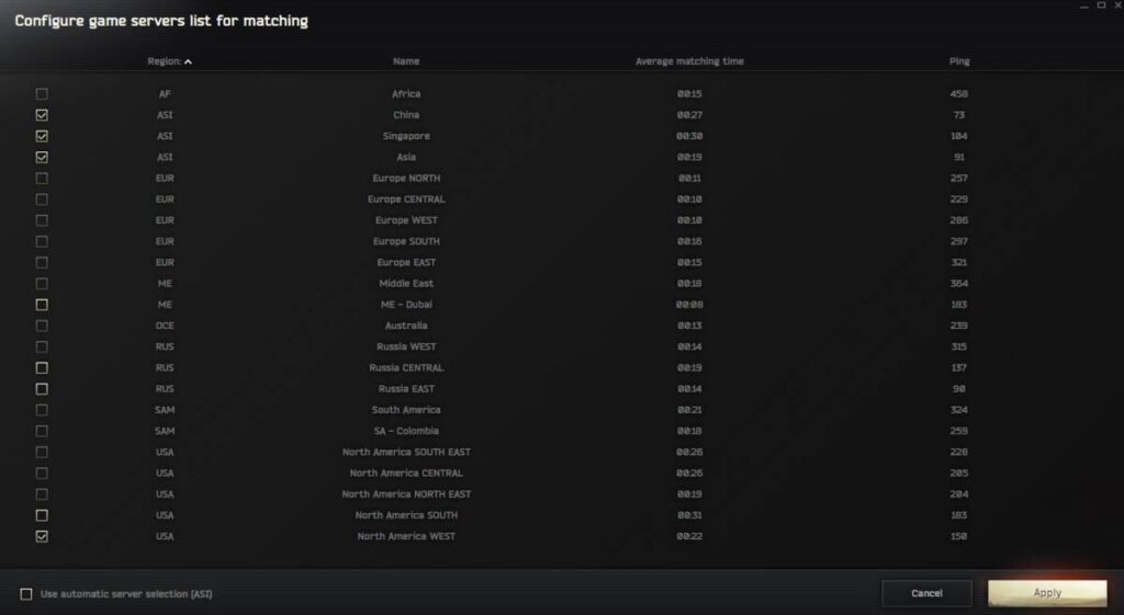 한국에서 일반적으로 플레이 가능한 서버는 중국, 싱가폴, 아시아, 러시아 중부 및 동부, 북미 서부 정도입니다. 사용하는 회선에 따라서 다양한 차이를 보이긴 하지만 대체로 중국, 싱가폴, 아시아 정도가 플레이 가능한 선으로 여겨지고 있죠.