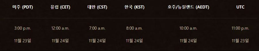 월드 오브 워크래프트(이하 와우)의 새 확장팩 <어둠땅>의 출시일이 11월 24일(북미지역 등은 11월 23일)로 가닥잡혔다. 이에 앞선 사전 패치인 <스컬지 침공> 이벤트는 오는 11월 12일부터 시작될 예정이다.